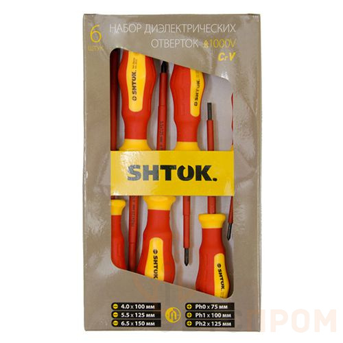 Набор отверток SHTOK (09906) — это профессиональный инструмент для точных электромонтажных и бытовых работ. Комплект включает 6 предметов: крестовые и шлицевые отвертки самых востребованных размеров (PH1, PH2, SL4, SL5.5, SL6.5).