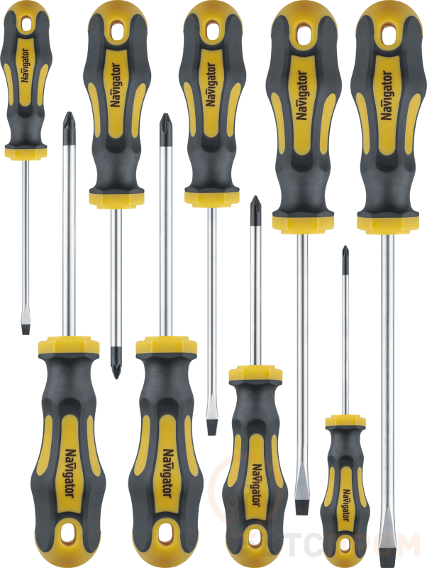 Набор отверток NHT-Ot02-H9 от бренда Navigator — это профессиональный комплект из 9 инструментов, предназначенный для выполнения широкого спектра монтажных и ремонтных работ. Отвертки набора оснащены намагниченными жалами, что обеспечивает удобство работы с мелкими крепежными элементами, и эргономичными двухкомпонентными рукоятками с противоскользящим покрытием для надежного хвата.