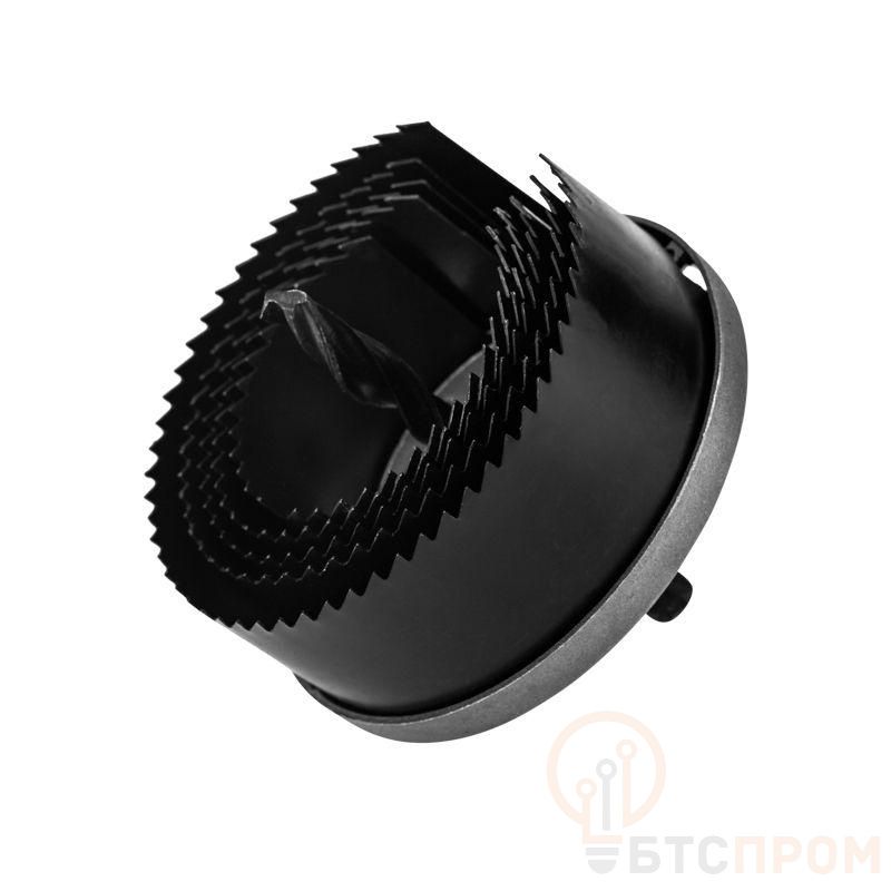Кольцевая пила состоит из держателя и коронок диаметром 60, 67, 74, 81, 95 мм, позволяющих вырезать круглые отверстия глубиной до 1,5 дюйма в дереве, ДВП и ДСП. Пила применяется при проведении работ по выводу труб через перегородки, а также при установке осветительных систем, розеток и выключателей. Используется в качестве оснастки для ручных и электрических дрелей. Хвостовик – цилиндрический. Режущие полотна изготовлены из высокоуглеродистой марганцевой стали марки 65Г, поэтому характеризуются высокими показателями износостойкости и остроты режущей кромки. Инструмент комплектуется направляющим сверлом, облегчающим центровку отверстия. На корпус держателя нанесены обозначения диаметров, что упрощает установку коронок. По окончании работ все полотна вставляются в держатель, что обеспечивает удобство хранения. Комплектация: кольцевые пилы 60, 67, 74, 81, 95 мм, держатель, центрирующее сверло.
