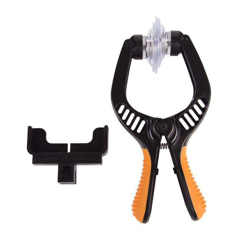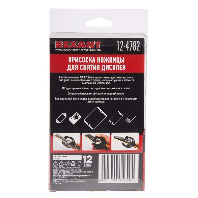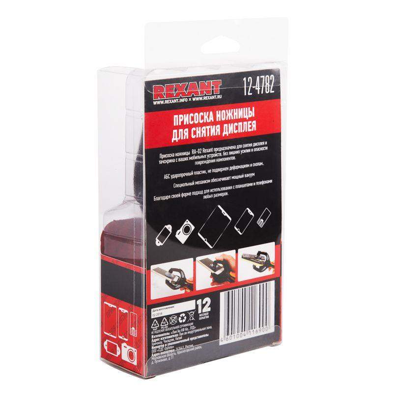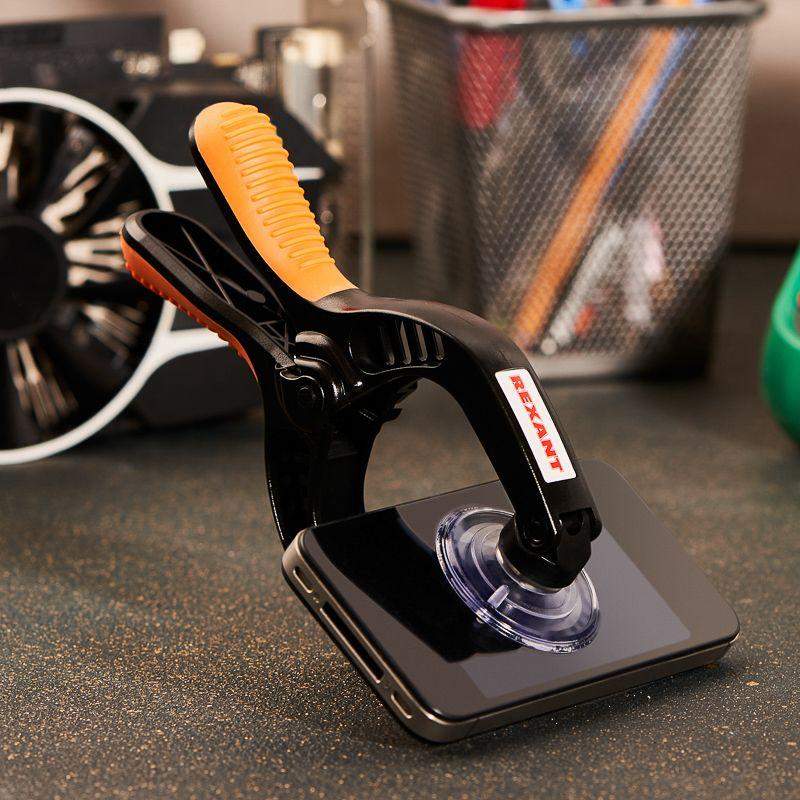 Съемник-присоска REXANT RA-02 в форме ножниц предназначен для удаления дисплея и touchscreen со смартфонов, планшетов, коммуникаторов, PlayStation. Подходит для Apple и Android устройств. Позволяет отделить экран без лишних усилий, исключает опасность повреждения компонентов техники. Техника устанавливаются между двумя присосками, которые прочно закрепляются на корпусе и экране, создавая мощный вакуум. При смыкании рукояток дисплей легко удаляется. Присоски фиксируются только с одной стороны техники – на экране. Для более надежной фиксации в инструменте предусмотрен съемный держатель. Благодаря форме ножниц инструмент подходит для работы с устройствами любых размеров. Корпус выполнен из ударопрочного пластика: не подвержен деформациям, сколам и повреждениям. Эргономичные прорезиненные рукоятки имеют рифление, благодаря которым ладонь не скользит при работе.