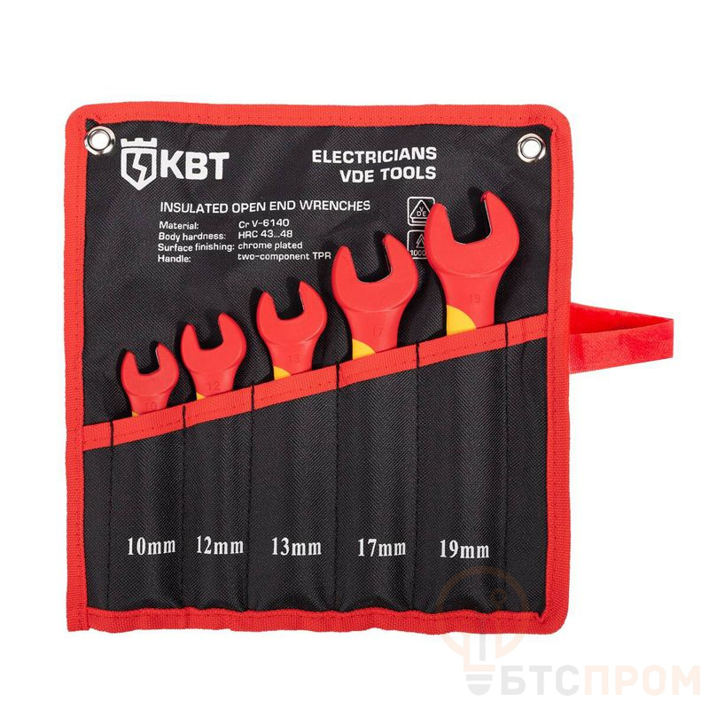 Набор диэлектрических однорожковых ключей НИК-Р-05 от КВТ (арт. 105669) — профессиональный инструмент для безопасной работы под напряжением до 1000 В. Комплект из 5 ключей с размерами: 6x7, 8x10, 11x13, 12x14, 17x19 мм.