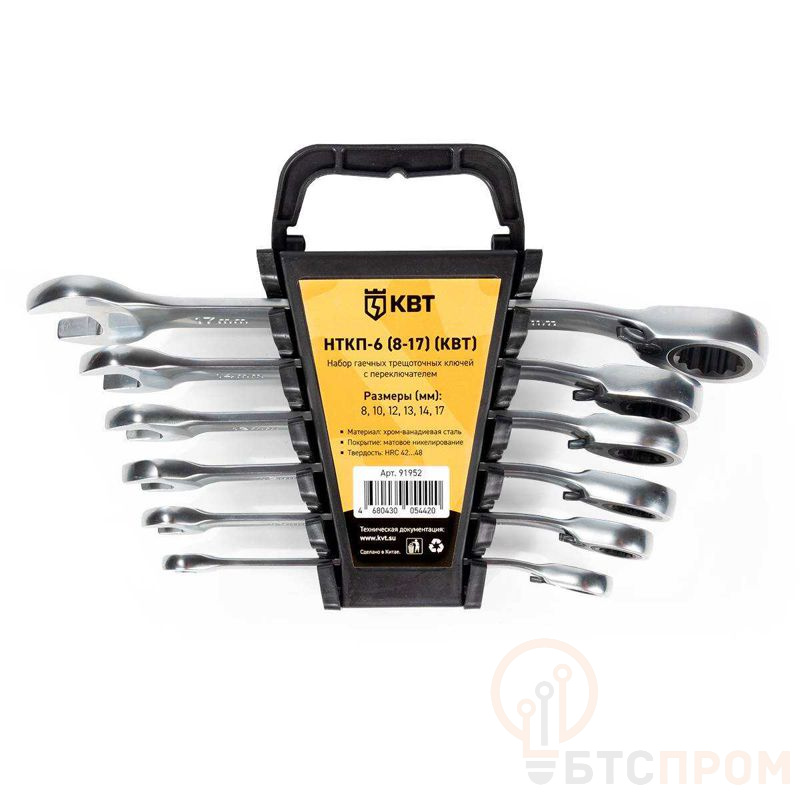 Набор гаечных комбинированных трещоточных ключей с переключателем реверса НТКП-6 (8-17) KBT-PROFESSIONAL КВТ 91952