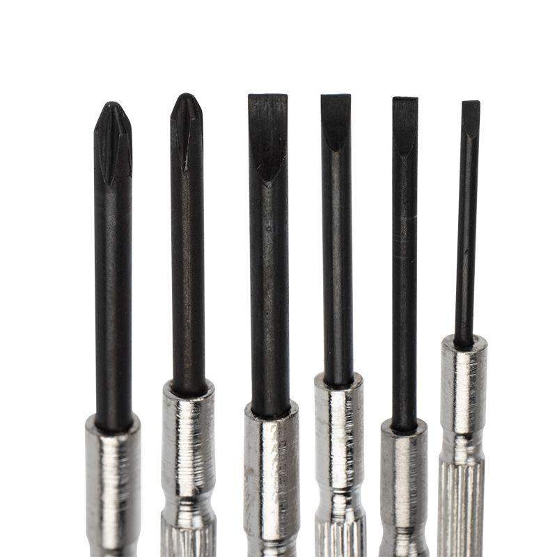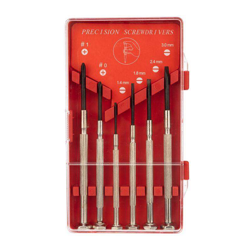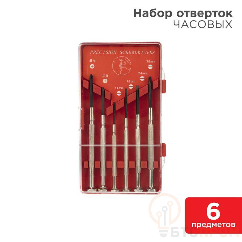 Набор часовых отверток REXANT ht-06 предназначен для выполнения высокоточных механических работ: сборки и ремонта электроаппаратуры, часов, компьютерной и мобильной техники и т. п. Все инструменты оснащены намагниченными наконечниками, что делает демонтажные и монтажные работы более простыми даже в труднодоступных местах. Диаметр рукоятки точно соответствует крутящему моменту: при работе срыв резьбы или разрыв деталей минимизирован. Отвертки изготовлены из качественной хромованадиевой стали, что гарантирует их долговечность и износоустойчивость. Инструменты оснащены конструкцией свободно вращающейся затылочной части ручки. Благодаря рифлению на корпусах рука во время работы не скользит. Для удобства хранения и транспортировки набор поставляется в пластиковом боксе. Характеристики: Количество отверток: 6 шт. Размер отверток SL: 1.4мм, 1.8мм, 2.4мм, 3.0мм Размер отверток PH: 0, 1 Материал рабочей части: CrV сталь Материал рукояток: CrV сталь