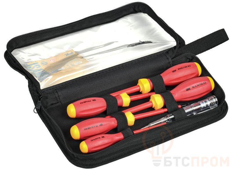Набор диэлектрических отверток серии К3 рассчитан на использование под напряжением до 1000В. Набор включает в себя: крестообразную отвертку PH2х100; шлицевые - SL2,5х75, SL4,0х100, SL5,5х125; пассатижи К3 160мм и отвертку-пробник ОП-1. Материал рукояток – полипропилен и поливинилхлорид PP+PVC.