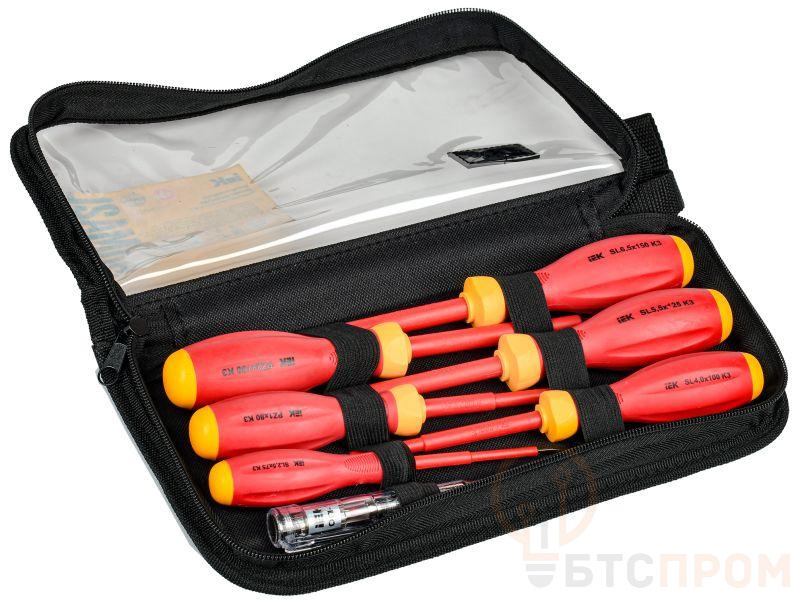 Набор диэлектрических отверток серии К3 рассчитан на использование под напряжением до 1000В. Набор включает в себя: крестообразные отвертки PZ1x80, PZ2х100; шлицевые - SL2,5х75, SL4,0х100, SL5,5х125, SL6,5х150 и отвертку-пробник ОП-1. Материал рукояток – полипропилен и поливинилхлорид PP+PVC..