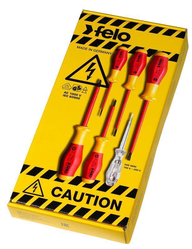 Набор диэлектрических отверток 900-ой серии предназначен для электромонтажных работ под напряжением до 1000 В с крепежом сечения SL и PH. Эргономичный дизайн рукоятки и противоскользящий материал (Soft Grip) помогает обеспечить наибольшую передачу усилия. Специальный дизайн двухкомпонентной рукоятки не позволяет инструменту скатываться с поверхности. Лезвия изготовлены из специальной хромомолибден-ванадиевой стали для достижения наилучшего результата при работе! Точная посадка в крепеж обеспечивается за счет черного наконечника (Black-Tip). Состав набора: VDE SL: 2,5 x 75 / 4,0 x 100 / 5,5 x 125 VDE PH: PH 1 x 80 / PH 2 x 100 отвертка тестер напряжения сети