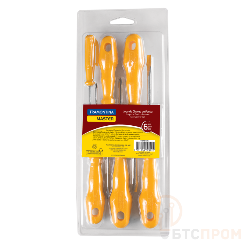 Набор отверток MASTER шлицевые: SL5х100; SL6х100; SL3х75 крестовые; PH0х75; PH1х100; PH2х100 (6 предметов) Tramontina Б0054526