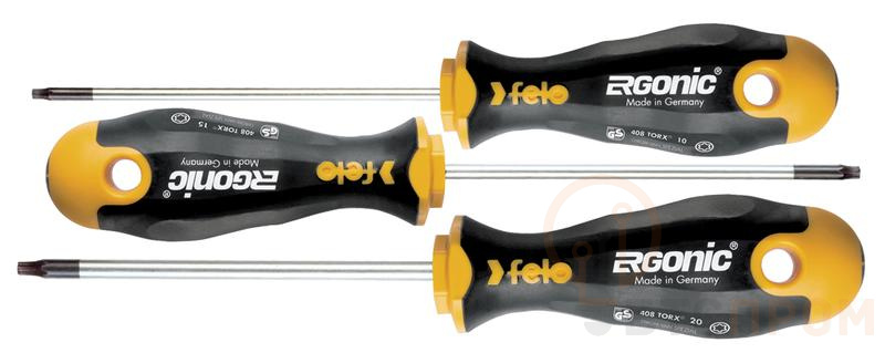 Набор отверток с трехкомпонентной рукояткой ERGONIC для работ с различными видами крепежа. В набор входит 3 отвертки Tx 10, 15, 20, 25 серия 408