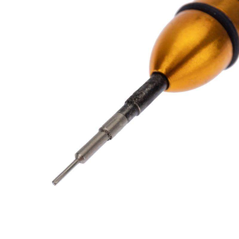 Отвертка Pentalobe (звездочка) REXANT предназначена для выполнения прецизионных работ в электронике и электромеханике, а также ремонта техники Apple. Рабочая часть инструмента выполнена из качественной стали, обладающей высокой прочностью, стойкостью к механическим повреждениям и образованию ржавчины. Двухкомпонентная рукоятка с резиновыми вставками не скользит в руке. Отвертка эргономичной формы обладает вращающейся шляпкой, которая позволяет производить прокручивание инструмента только пальцами без постоянного перемещения руки. Характеристики: Вид: Pentalobe 0.8 Материал рабочей части: хромованадиевая сталь Материал рукоятки: алюминий, резина