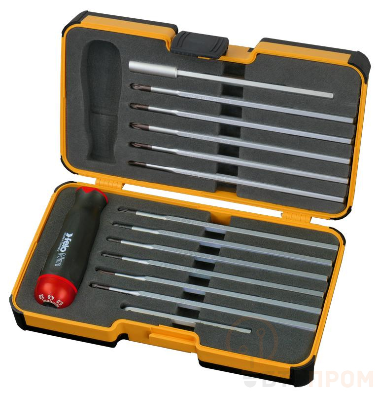 Отвертка с регулировкой крутящего момента Nm 3.0-5.4 с набором насадок 12шт в кейсе plus/minus Felo 10099816