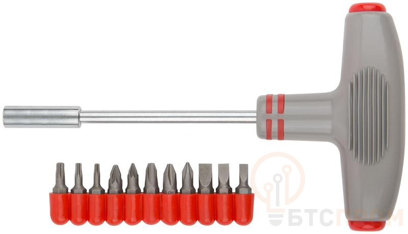 Отвертка Т-образная FIT – это удобный и эффективный инструмент для завинчивания и отвинчивания шурупов с разными типами шлицев. Т-образная форма ручки обеспечивает удобный хват и позволяет прилагать большее усилие при завинчивании. Набор включает 11 бит из хромованадиевой стали CrV с разными типами шлицев и размерами, что позволяет выполнять различные работы.