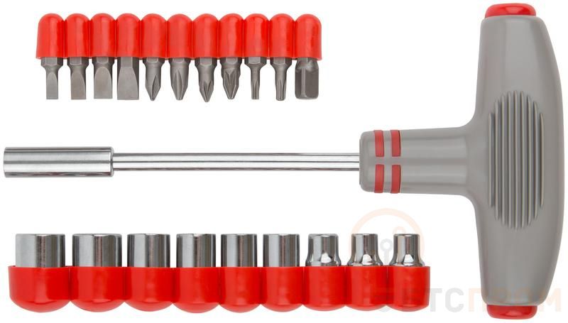 Отвертка Т-образная FIT – это универсальный инструмент, который сочетает в себе функции отвертки и трещотки. Т-образная форма ручки обеспечивает удобный хват и позволяет прилагать большее усилие при завинчивании. Набор включает 11 бит из хромованадиевой стали CrV с разными типами шлицев и размерами, а также 9 головок разных размеров. Отвертка FIT проста в использовании и станет надежным помощником при выполнении различных работ.