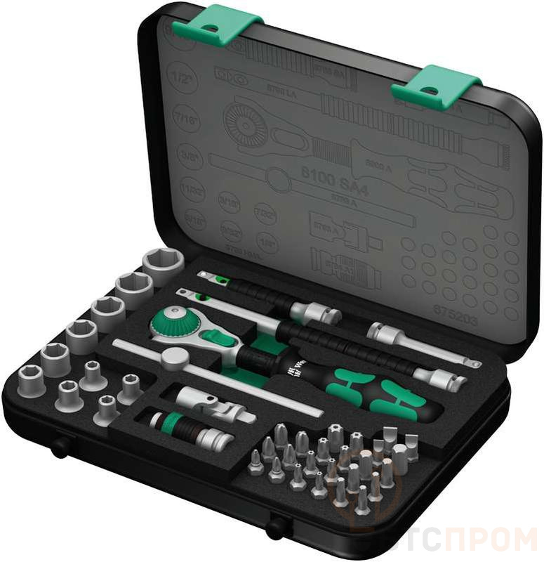 –Набор 1/4дюйм головок и 1/4дюйм бит с трещоткой 8100 SA 4 Zyklop Speed 41 предмет Wera WE-003535