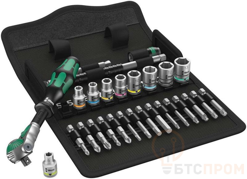 Набор 1/4дюйм головок и 1/4дюйм бит с трещоткой 8100 SA 6 Zyklop Speed 28 предметов Wera WE-004016 фото в каталоге от BTSprom.by