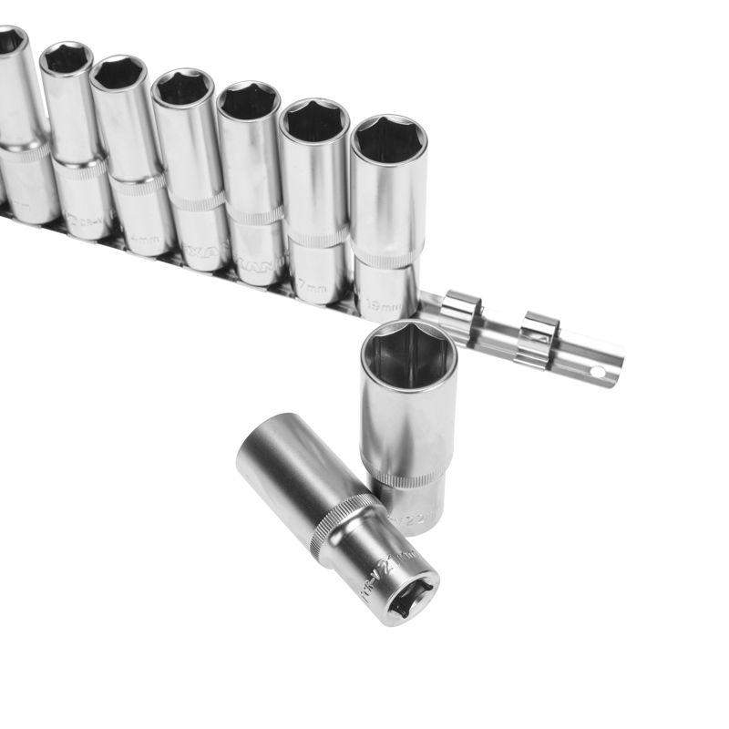 Набор головок REXANT используется для монтажа и демонтажа резьбовых соединений. Широко применяется при ремонте автомобилей и различного оборудования. Инструменты изготовлены из хромованадиевой износостойкой и долговечной стали с хромоникелевым покрытием. Твердость материала рабочей части головок – 42 HRС. В набор входят 6-гранные удлиненные торцевые головки на планке под квадрат 1/2" следующих размеров: 10, 12, 13, 14, 15, 16, 17, 19, 21 и 22 мм. Ярко-красная полоска, нанесенная на головки, предназначена для удобного поиска. Изделия поставляются на металлической планке и упакованы в блистер.