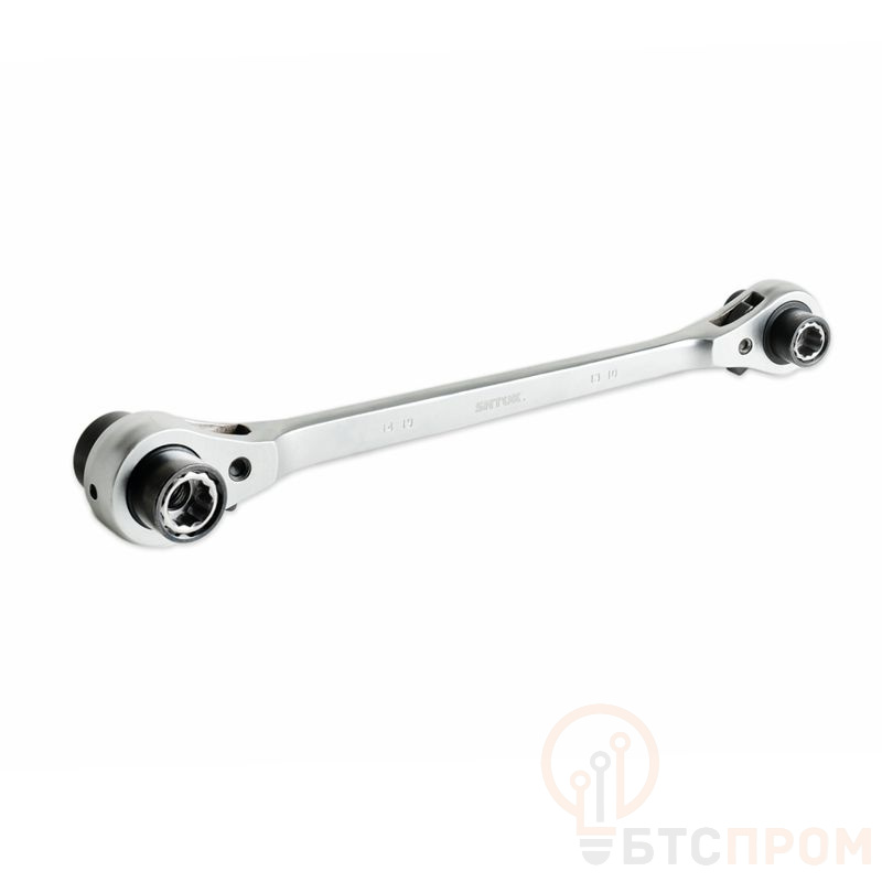 Ключ оснащен удобной реверсивной трещоткой, позволяющей быстро откручивать и закручивать крепеж без перехвата. Это значительно ускоряет процесс работы в стесненных условиях. Прочный хромованадиевый сплав обеспечивает долговечность и стойкость к высоким нагрузкам.