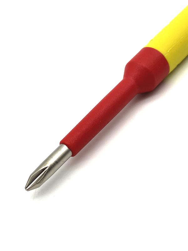 Специальная крестовая бита Felo PH 1 длиной 115 мм с диэлектрическим покрытием предназначена для проведения ремонтных, монтажных и строительных работ при помощи шуруповерта под напряжением до 1000 Вольт. Биты Felo изготовлены из хром-молибден-ванадиевой стали, закаленной в масле до твердости 60-64 HRC, что предотвращает скалывание шлица и продлевает срок службы биты. Каждая отдельная бита протестирована под напряжением 10.000 Вольт, чтобы обеспечить безопасную работу под напряжением. Страна производства - Германия.