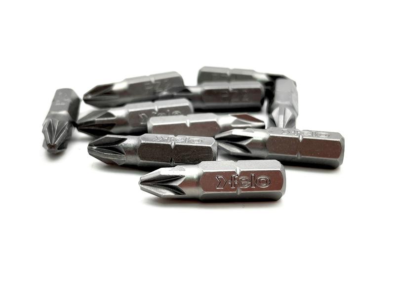 набор бит Felo серии Industrial PZ2 длиной 25 мм применяются для работ по монтажу/демонтажу крепежа, имеющего шлиц PН2 при помощи шуруповерта или отвертки под биты. Биты Felo изготовлены из хром-молибден-ванадиевой стали, закаленной в масле до твердости 60-64 HRC, что предотвращает скалывание шлица и продлевает срок службы биты. Посадка 1/4". Хвостовик С 6.3. Страна производства - Германия. Поставка - 10 шт в пластиковом боксе.