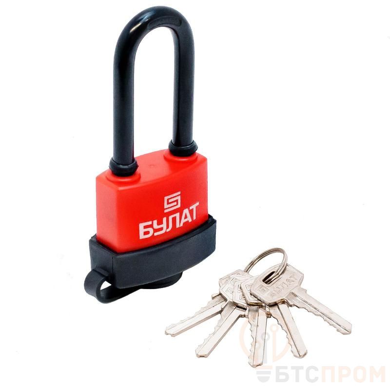БУЛАТ ВС 1-П42-01 ПЛ всепогодный 5кл. d=8мм Замок навесной (72,48,12), , Замок навесной «БУЛАТ» предназначен для запирания, распределительных щитов, почтовых ящиков, гаражей, складов, подвалов и прочих помещений. Замок запирается автоматически при нажатии на скобу без использования ключа. Пластиковый кожух защищает замок от внешнего воздействия окружающей среды. Замок обладает длительным сроком эксплуатации. Гарантийный срок 5 лет с момента продажи через розничную сеть.