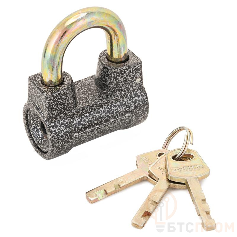 Серия "Русский стиль". Замок навесной. Материал корпуса - алюминиевый сплав, полимерное покрытие. Ширина основания корпуса - 54мм, диаметр дужки 10мм. Дисковый механизм секрета, 3 ключа с двойной нарезкой секрета.