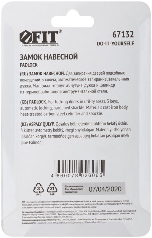 Замок навесной FIT DIY предназначен для запирания шкафов, тумбочек, ящиков. Небольшой, удобный замок закрывается без помощи ключа, дужка из закаленной инструментальной стали устойчива против перепиливания. Модель укомплектована тремя английскими ключами под цилиндровый механизм. Форма ключа трудна в копировании, обладает высокой надежностью. Замок изготовлен из качественных материалов, отличается прочностью и долговечностью.