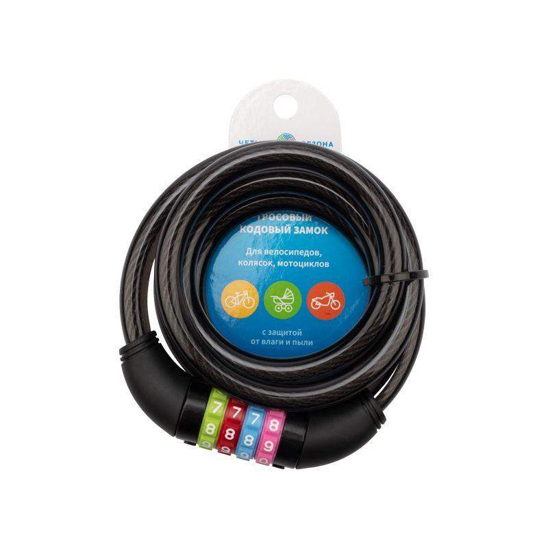 –Замок тросовый кодовый взломостойкий для велосипедов и колясок 150см черн. ЧЕТЫРЕ СЕЗОНА 79-0216