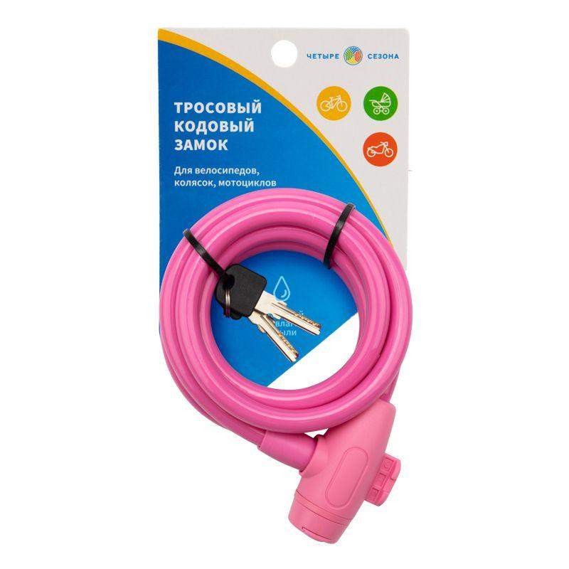 Замок тросовый взломостойкий для велосипедов и колясок с ключом 150см роз. ЧЕТЫРЕ СЕЗОНА 79-0314