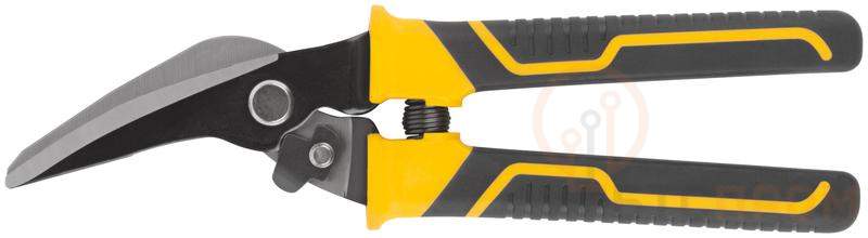 Ножницы по металлу FIT IT (левые) с усиленной пружиной предназначены для прямого сквозного и левого фигурного реза холоднокатанной стали толщиной до 1,2 мм и нержавеющей стали толщиной до 0,8 мм. Лезвия выполнены из высокоуглеродистой стали SK5, которая отличается особой прочностью, хорошо держит первоначальную заточку, хорошо обрабатывается, слабо истирается. Пластиковые прорезиненные ручки обеспечивают надежный захват и удобное удержание инструмента.