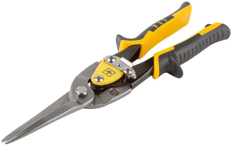 Ножницы по металлу FIT HQ предназначены для резки холоднокатанной стали толщиной до 1,2 мм и нержавеющей стали толщиной до 0,8 мм. Лезвия изготовлены из закаленной хром-молибденовой стали и обладают высокой прочностью. Закалка до твердости 56–60 HRC обеспечивает высокую износостойкость. Двойной рычажный механизм в значительной степени увеличивает прикладываемое усилие и облегчает резку толстого материала. Усиленная пружина обладает длительным сроком службы. Эргономичные рукоятки с упорами обеспечивают надежный хват. Резиновые вставки на рукоятках предотвращают проскальзывание во время работы. Встроенная в рукоятку петля позволяет хранить инструмент в подвешенном положении. Блокиратор на корпусе повышает безопасность во время хранения.