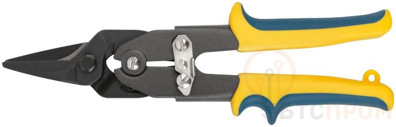 Ножницы по металлу FIT HQ с усиленной пружиной предназначены для резки холоднокатаной стали толщиной до 1,2 мм и нержавеющей стали толщиной до 0,8 мм. Двойной рычажный механизм передает большое усилие во время работы. Противоскользящие прорезиненные рукоятки обеспечивают надежный хват. Блокиратор предотвращает произвольное открытие ножниц во время хранения или транспортировки. Отверстие в рукоятке дает возможность хранить ножницы в подвешенном состоянии.