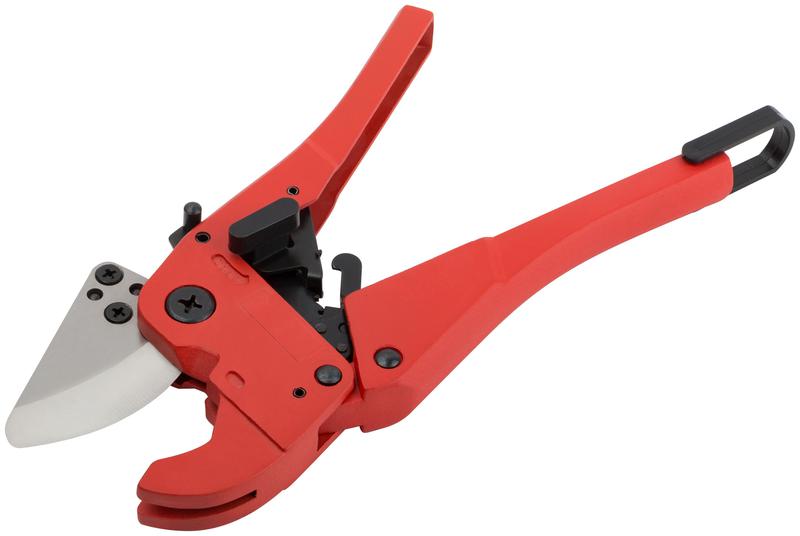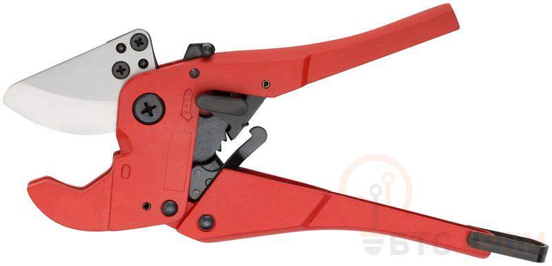 Ножницы для металлопластиковых трубок FIT IT предназначены для резки труб из пластика и металлопластика диаметром до 42 мм. Корпус выполнен из алюминиевого сплава — легкая и удобная конструкция ножниц позволяет качественно и ровно резать трубы одной рукой. Модель оснащена храповым механизмом, который позволяет с легкостью перекусывать даже толстостенные трубки. Лезвие изготовлено из качественной нержавеющей стали, поэтому долгое время остаётся острым. Механизм автоматического открытия позволяет легко установить лезвие в стартовом положении.
