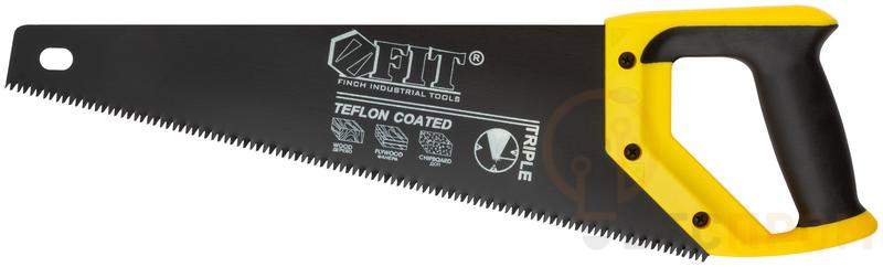 Ножовка по дереву средн.кален.зуб 7 ТPI 3D заточка пласт.прорезинен.ручка тефлон.покрытие 400мм FIT 40464