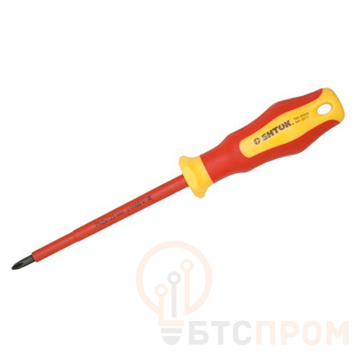 Отвертка SHTOK (09206) — профессиональный ручной инструмент, предназначенный для безопасной работы с электрооборудованием под напряжением до 1000 В. Это подтверждается полной изоляцией стержня, соответствующей международному стандарту IEC 60900.