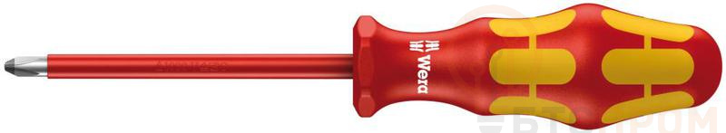 Диэлектрическая крестовая отвертка Wera 165 i PZ VDE (артикул WE-006160) — профессиональный инструмент, созданный для безопасной работы с электрооборудованием под напряжением до 1000 В. Жало типа PZ (Pozidriv) размером 0 и длиной 80 мм обеспечивает превосходное сцепление с винтом, предотвращая проскальзывание и повреждение шлица.