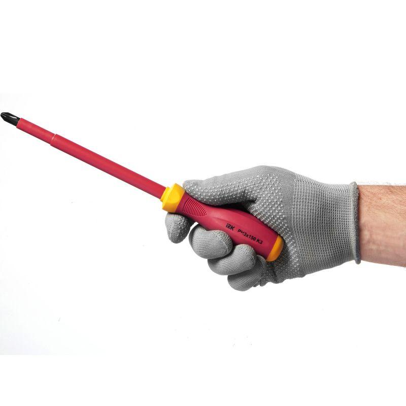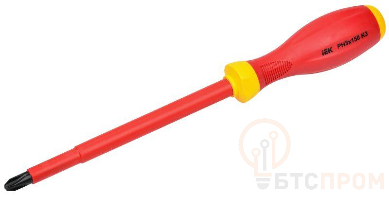 Диэлектрическая крестообразная отвертка К3 (Expert) предназначена для электромонтажных работ под напряжением до 1000В, изготовлена из хром-ванадиевой стали. Рукоятка из 2-х-слойной термопластичной резины PP+TPR.