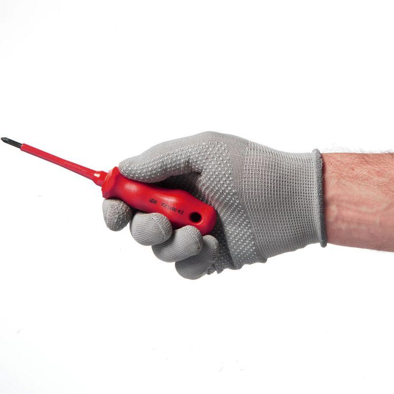 Диэлектрическая шлицевая отвертка К2 (Profi) предназначена для электромонтажных работ под напряжением до 1000В, изготовлена из хром-ванадиевой стали. Рукоятка выполнена из однокомпонентного полипропилена PP