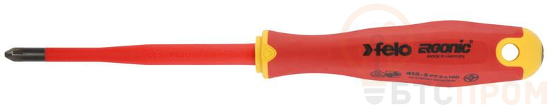 Отвертка диэлектрическая Felo серии E-Slim предназначена для проведения электромонтажных работ с крепежом сечения PZ 2 в установках и электрощитах под напряжением до 1000 Вольт. Серия E-Slim отличается от обычных отверток более тонкой и удлиненной рукояткой (на 30% тоньше и на 20% длиннее) и утонченной изоляцией стержня (на 50% тоньше), что обеспечивает безопасное рабочее расстояние и лучший обзор. Гладкая бесшовная ручка с мягким внешним покрытием имеет улучшенную эргономику, так как выполнена по запатентованной технологии Felo ERGONIC - единственная в мире ручка, которая адаптируется к руке пользователя, обеспечивает превосходную эргономику, передачу крутящего момента и комфорт при работе. Стержень изготовлен из высококачественной инструментальной стали (CrMoV) дополнительно закаленной в масле и проходит по всей длине рукоятки. Все отвертки сертифицированы в соответствии с DIN EN 60900, который требует, чтобы каждый отдельный инструмент был протестирован под напряжением 10.000 Вольт.