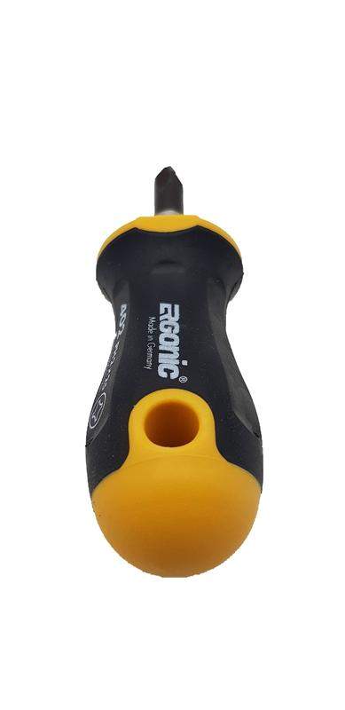 "Короткая крестовая отвертка Felo Stubby PH2х25, 85 мм, 46202010 — это компактный инструмент, специально разработанный для работы с крепежом типа PH2 в условиях ограниченного пространства. Общая длина отвертки составляет 85 мм, что делает её идеальным выбором для задач, где стандартные инструменты не подходят. Стержень изготовлен из высококачественной инструментальной стали, устойчивой к износу и деформации. Прочность инструмента значительно превышает требования европейских стандартов DIN и ISO. На верхней части рукоятки нанесена маркировка типа шлица для удобства идентификации. Эргономичная конструкция обеспечивает удобный захват и эффективную передачу усилия, минимизируя усталость при работе."