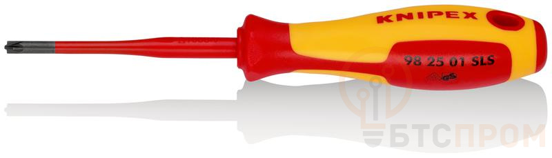 Отвертка PlusMinus Pozidriv PZ/S 1 тонкая VDE 1000В длина стержня 80мм L187мм диэлектрическая двухкомпонентн. рукоятка Knipex KN-982501SLS