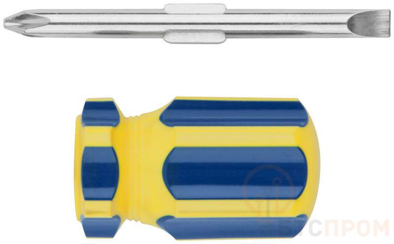 Отвертка с переставным жалом "коротыш" CrV сталь пластиковая ручка 6х32мм PH2/SL6 син.-желт. FIT 56212