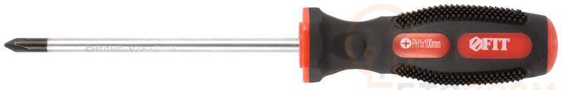 Отвертка FIT IT ‘’Универсал’’ предназначена для завинчивания и отвинчивания крепёжных изделий с резьбой. Стержень отвертки изготовлен из хромованадиевой стали и выдерживает высокие механические нагрузки. Точная геометрия наконечника позволяет эффективно работать с соответствующим типом крепежа. Магнитный наконечник способствует удержанию крепежных элементов и их извлечению из труднодоступных мест. Эргономичная прорезиненная рельефная рукоятка не скользит в руках.