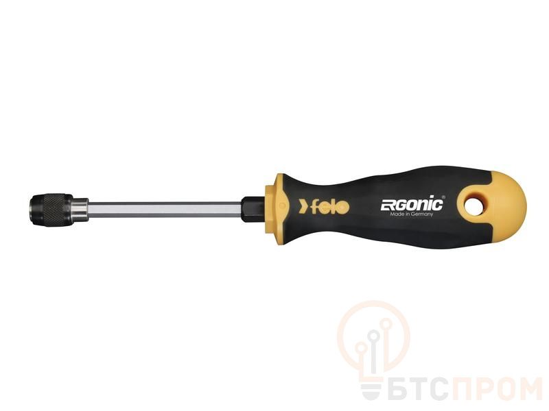Отвертка Felo с шестигранным стержнем и наконечником битодержателем предназначена для работ с крепежом различного типоразмера за счет возможности применения коротких или длинных бит с хвостовиком 1/4". Надежная фиксация бит обеспечивается наличием специального удерживающего механизма на наконечнике. На стержне имеется шестигранная гайка для придания дополнительного усилия ключом. Рукоятка ERGONIC - первая в мире бесшовная рукоятка, которая адаптируется под руку любого пользователя, снижает нагрузку и утомляемость, а также увеличивает комфорт и максимальный крутящий момент. Продуманный дизайн рукоятки не позволяет инструменту скатываться с поверхности. Внешнее покрытие рукоятки имеет высокую устойчивость к царапинам и ГСМ. Длина стержня 110 мм. Общая длина 216 мм.