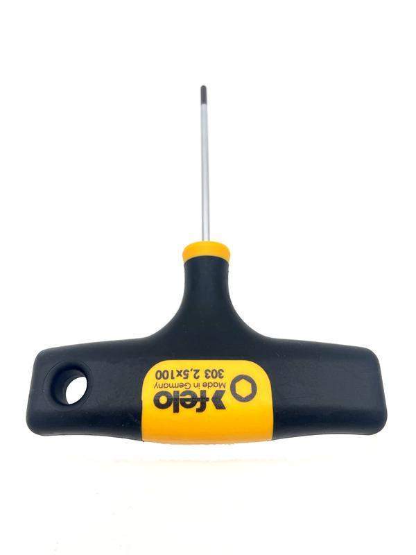 Отвертка шестигранная под головки, 2,5 мм Felo Т-образной формы предназначена для проведения монтажно-демонтажных и ремонтных работ с торцевыми головками 2,5 мм. Двухкомпонентная рукоятка с мягким внешним покрытием Soft-Grip отвертки изготовлена из устойчивого к повреждениям и агрессивным средам пластика. Ударопрочный стержень проходит по всей длине рукоятки и изготовлен из высококачественной инструментальной стали (CrMoV), дополнительно закаленной в масле, что значительно повышает рабочий ресурс инструмента. Отверстие в рукоятке для удобного хранения и дополнительного использования инструмента в качестве рычага. Подходит для ежедневного профессионального использования. Страна производства - Германия. Гарантия 15 лет.