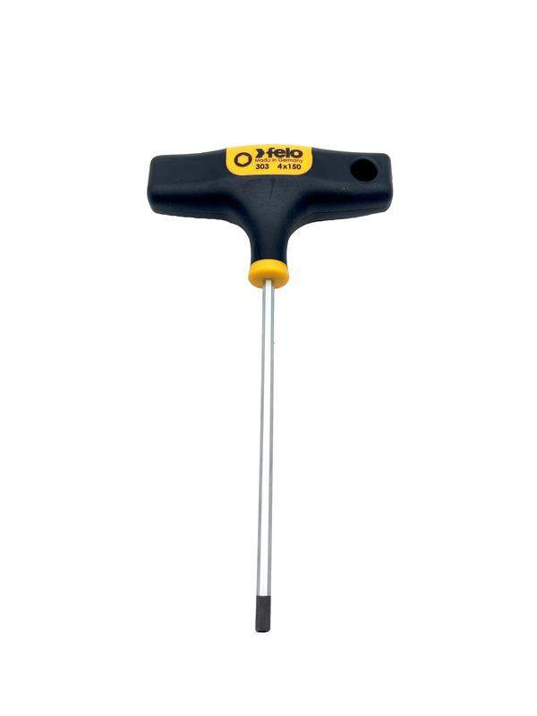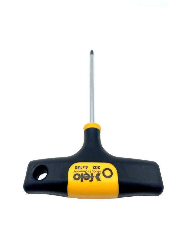 Отвертка шестигранный ключ Felo Т-образной формы предназначена для проведения монтажно-демонтажных и ремонтных работ с крепежом типа НЕХ 4 мм. Двухкомпонентная рукоятка с мягким внешним покрытием Soft-Grip отвертки изготовлена из устойчивого к повреждениям и агрессивным средам пластика. Ударопрочный стержень проходит по всей длине рукоятки и изготовлен из высококачественной инструментальной стали (CrMoV), дополнительно закаленной в масле, что значительно повышает рабочий ресурс инструмента. Отверстие в рукоятке для удобного хранения и дополнительного использования инструмента в качестве рычага. Подходит для ежедневного профессионального использования. Страна производства - Германия. Гарантия 15 лет.