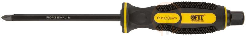 Отверткa ударная сталь S2 шестигран. жало боек под ключ прорезиненная ручка профи 5х100мм PH1 FIT 55622