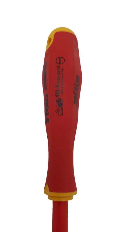 Отвертка диэлектрическая Felo серии E-Slim предназначена для проведения электромонтажных работ с крепежом сечения SL 6,5 в установках и электрощитах под напряжением до 1000 Вольт. Серия E-Slim отличается от обычных отверток более тонкой и удлиненной рукояткой (на 30% тоньше и на 20% длиннее) и утонченной изоляцией стержня (на 50% тоньше), что обеспечивает безопасное рабочее расстояние и лучший обзор. Гладкая бесшовная ручка с мягким внешним покрытием имеет улучшенную эргономику, так как выполнена по запатентованной технологии Felo ERGONIC - единственная в мире ручка, которая адаптируется к руке пользователя, обеспечивает превосходную эргономику, передачу крутящего момента и комфорт при работе. Стержень изготовлен из высококачественной инструментальной стали (CrMoV) дополнительно закаленной в масле и проходит по всей длине рукоятки. Все отвертки сертифицированы в соответствии с DIN EN 60900, который требует, чтобы каждый отдельный инструмент был протестирован под напряжением 10.000 Вольт.