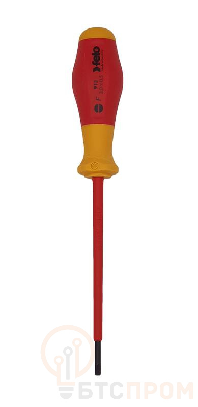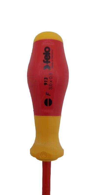 Отвертка диэлектрическая шлицевая серии 900 предназначена для работ с крепежом SL 3,0х0,5 под напряжением до 1000 В. Эргономичный дизайн рукоятки и противоскользящий материал (Soft Grip) помогает обеспечить наибольшую передачу усилия. Специальный дизайн двухкопонентной рукоятки не позволяет инструменту скатываться с поверхности. Лезвия изготовлены из специальной хромомолибден-ванадиевой стали для достижения наилучшего результата при работе! Точная посадка в крепеж обеспечивается за счет черного наконечника (Black-Tip).