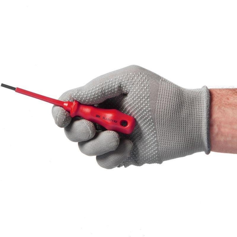 Диэлектрическая шлицевая отвертка К2 (Profi) предназначена для электромонтажных работ под напряжением до 1000В, изготовлена из хром-ванадиевой стали. Рукоятка выполнена из однокомпонентного полипропилена PP.