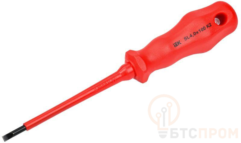 Диэлектрическая шлицевая отвертка К2 (Profi) предназначена для электромонтажных работ под напряжением до 1000В, изготовлена из хром-ванадиевой стали. Рукоятка выполнена из однокомпонентного полипропилена PP.