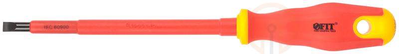 Отвертка изолированная FIT IT предназначена для продолжительной работы с крепежными элементами под напряжением до 1000 В. Изолированный стержень отвертки изготовлен из хром-ванадиевой стали и выдерживает высокие механические нагрузки. Точная геометрия наконечника обеспечивает эффективную работу с соответствующим типом крепежа. Магнитный наконечник способствует удержанию крепежных элементов и их извлечению из труднодоступных мест. Мягкая прорезиненная рукоятка не скользит в руке во время работы. В рукоятке предусмотрено отверстие для удобного хранения.